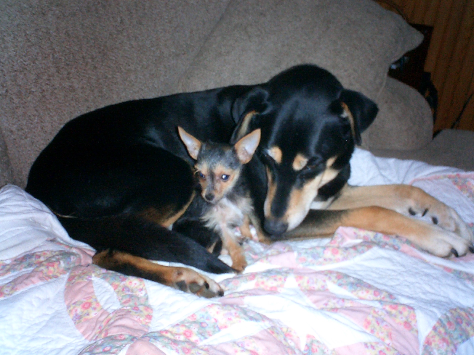 There is no way that we slept in until 8:00, but that is exactly what happened. Usually, we are up 2 hours earlier, either by the cricket alarm or the Chimmie/Chip alarm. Today, there wasn't even a peep until Chim started whining to go out. It's a good thing Linda's first class wasn't until 10:30! She planned on shampooing the carpet this morning before class and Noah came at noon, but all she had time for was a good vacuum and scrubbing the tile floors. Oh well, if Noah does not come over today she'll do the carpets when she gets home from class. I'm no longer allowed to spend the day alone in her bedroom since she has a sneaking suspicion that it was me who peed on the carpet yesterday.